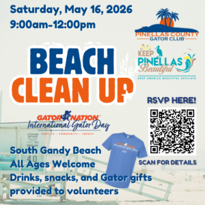 JOIN PCGC AND KEEP PINELLAS BEAUTIFUL FOR AN INTERNATONAL GATOR DAY BEACH CLEAN UP ON SATURDAY, MAY 16TH AT 9:00AM. TICKETS AND DETAILS ON THE EVENTBRITE LINK!